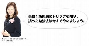 ルイス遠藤智美さんのチェルシー式 英検1級突破講座一次試験編ではその点、文法を理解しましょうとか、単語をたくさん覚えましょうといったことの前に、